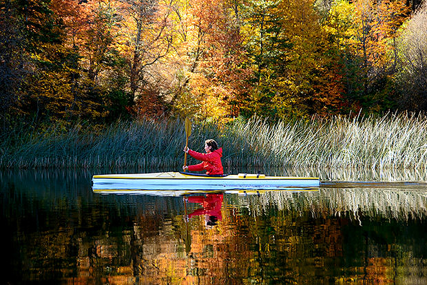 The watersports don't have to end once summer is over. Kayaking provides a great way to enjoy cooler temperatures and fall foliage. Many cardiovascular exercises work the lower body, but few challenge the upper body as much as paddling. Kayaking at a moderate pace for 60 minutes will burn 478 calories.