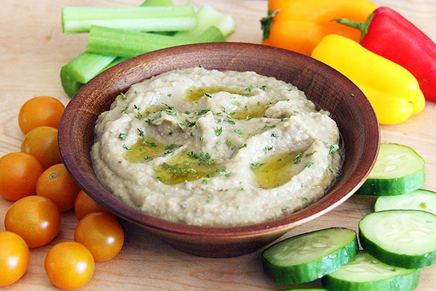 Baba ganoush is an eggplant dip or spread popular in Turkish, Lebanese, and Indian cuisines. It is easy to make at home and is a delicious vegetable-based snack with heart-healthy fats. While it is often served with pita or flatbread, you can lighten up your snack by serving it with fresh vegetables, such as cucumber slices, celery sticks, and cherry tomatoes.